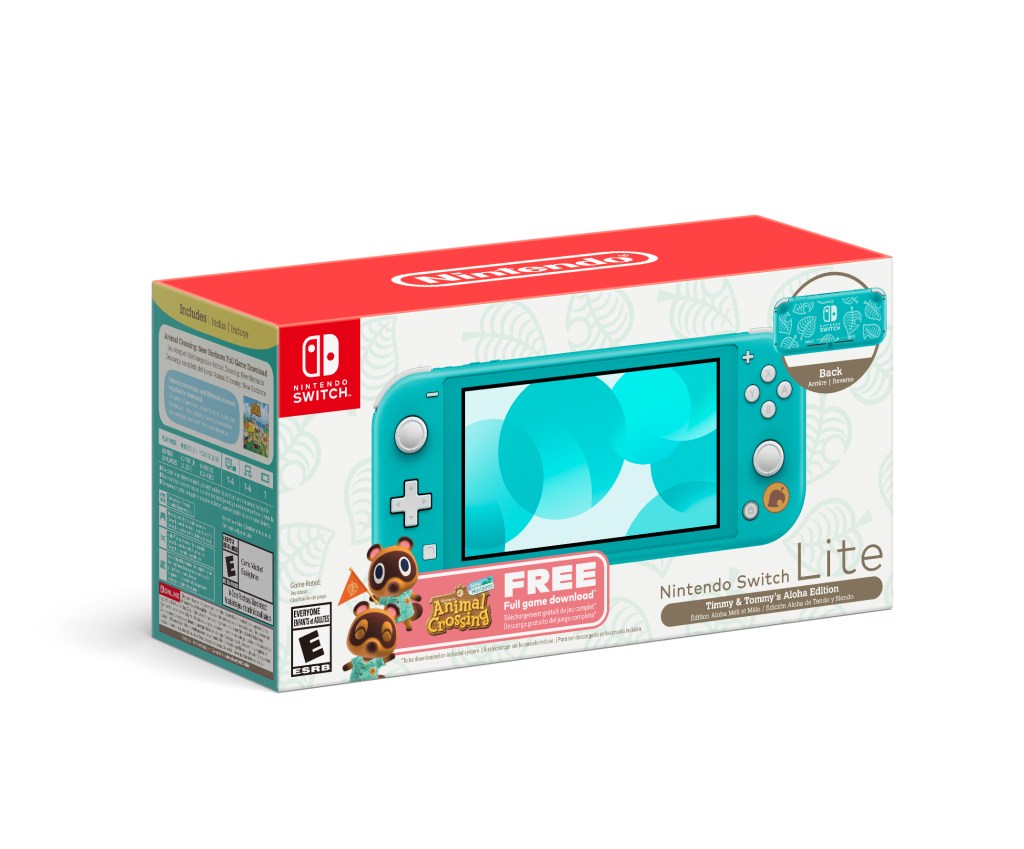 - Profitez d’une brise marine sereine avec l’ensemble Nintendo Switch™ Lite (édition Aloha de Méli & Mélo) Animal Crossing™: New Horizons. Uniquement disponible chez Walmart, cet ensemble exclusif comprend une console rafraichissante de couleur turquoise orné d’un motif de feuille sur le devant et d’un motif de feuille blanche au dos.