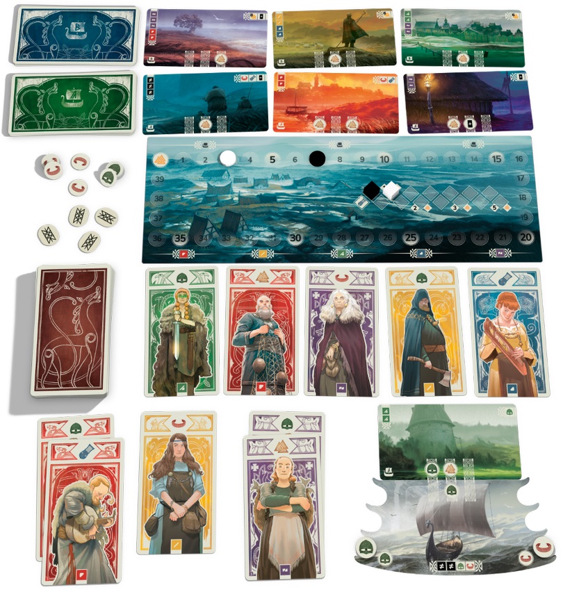 Les cartes représentent des vikings de différentes couleurs et types de ressources qu’ils génèrent. Il existe 5 ressources différentes avec lesquels il faudra jongler durant la partie afin d’augmenter le plus rapidement l’influence de notre bande et remporter la partie.