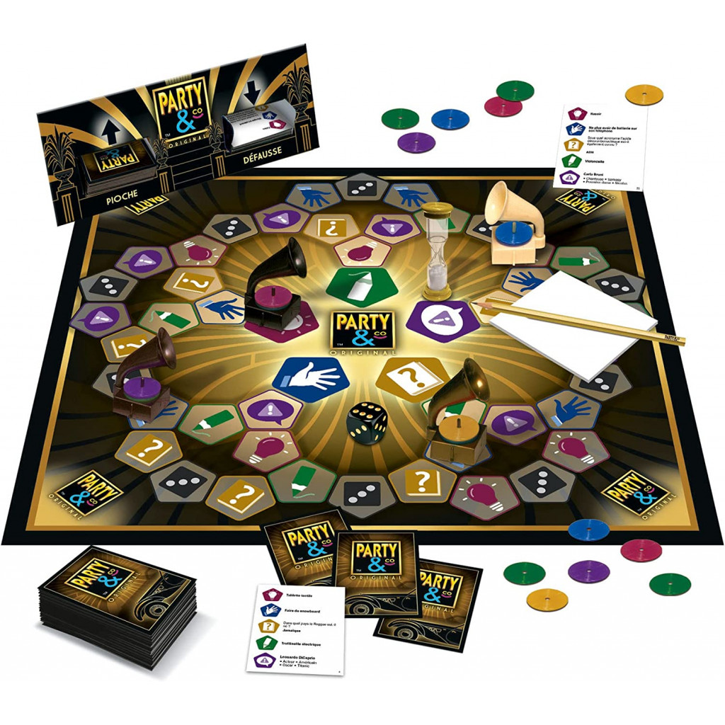 Dans ce jeu de questions et défis, les joueurs forment des équipes de 2 joueurs ou plus. Il est possible de jouer à 3 joueurs, mais je recommande d’être au moins 4. Chaque équipe reçoit un pion gramophone qu’il place au centre du plateau. Le plateau est composé de plusieurs cases représentants les 5 catégories de défis du jeu: les 1,2,3; les quiz; les mimes; les dessins et les mots interdits. À son tour, chaque équipe brasse le dé et déplace son pion sur le plateau jusqu’à une case défi. S’il complète le défi, il reçoit le jeton vinyle de la couleur correspondante et le place sur le gramophone. Elle peut alors rejouer. Si le défi est échoué, il ne récupère pas de jeton vinyle, et l’équipe suivante peut jouer son tour. Lorsqu’une équipe récupère les 5 jetons différents, elle doit se rendre au centre du plateau pour un défi final, au choix de ses adversaires. Si elle réussi, elle remporte la partie, autrement, elle peut réessayer au tour suivant.