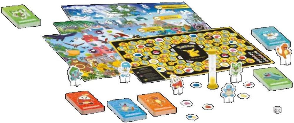 À l’aide d’un plateau et d’un Pokémon qui servira de pion, vous devrez aller récupérer vos deux baies. À tour de rôle, vous lancerez un dé et ramasserez 6 cartes de types différents (représentant des starters). Ces cartes proposeront des défis tels que deviner l’ombre d’un Pokémon, des énigmes de type « qui suis-je », trouver trois Pokémon dans une scène dont les noms commencent par une lettre spécifique, ou encore des cherche et trouve simples.