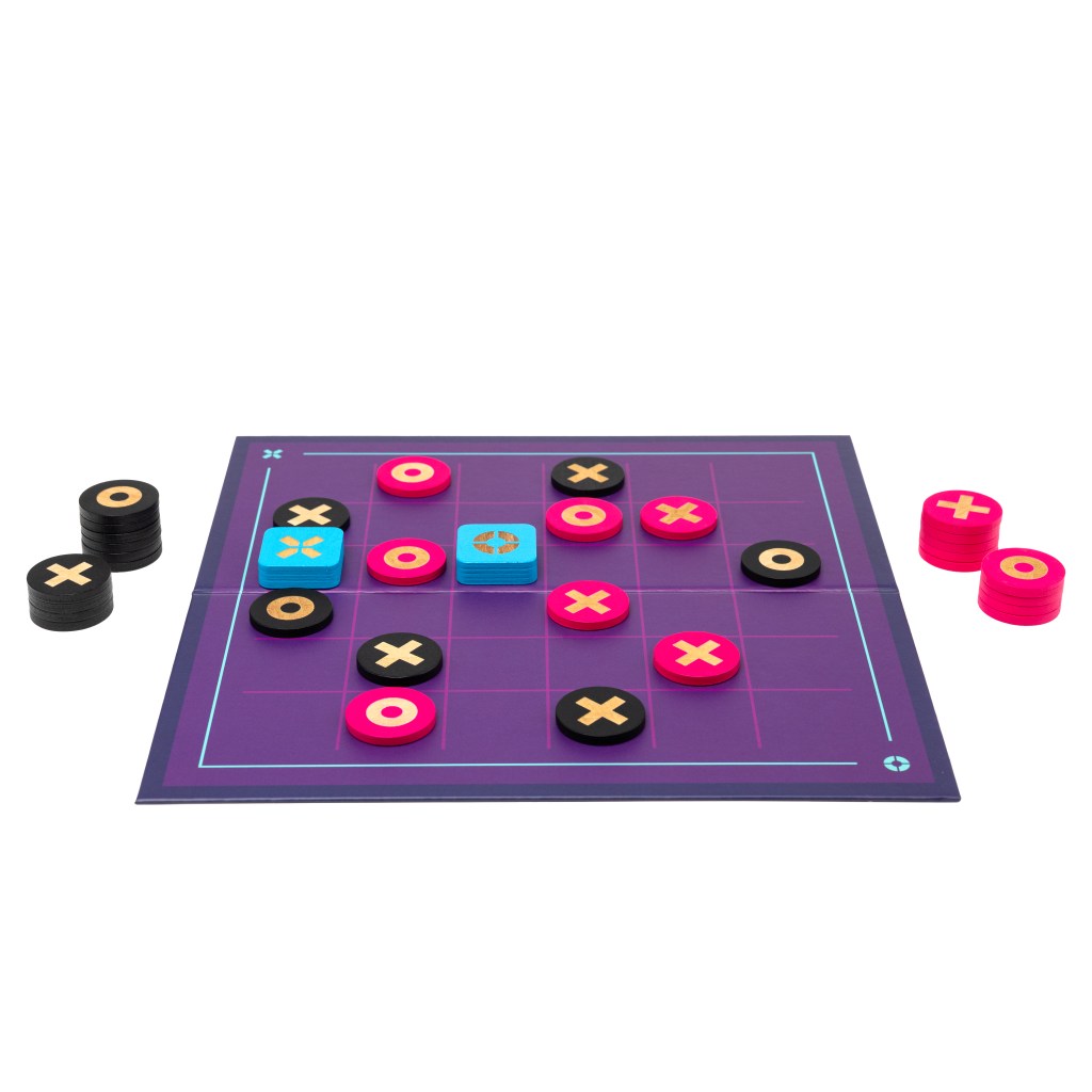 Oxono est un jeu de réflexion qui vous demandera de bien penser à chacun de vos mouvements. Gardez en tête que vous pouvez jouer sur le jeu de votre adversaire également; en effet, si le joueur rose assemble une ligne de 3 X de sa couleur, le joueur noir peut à son tour placer un X de sa couleur pour compléter la ligne et ainsi remporter la partie. Ne vous fiez pas aux apparences, le jeu est plus complexe qu’il n’y parait. Néanmoins, il demeure simple d’explications et accessibles à tous. Un jeu rapide à apprendre, à expliquer, mais qui demandera du temps à maitriser!