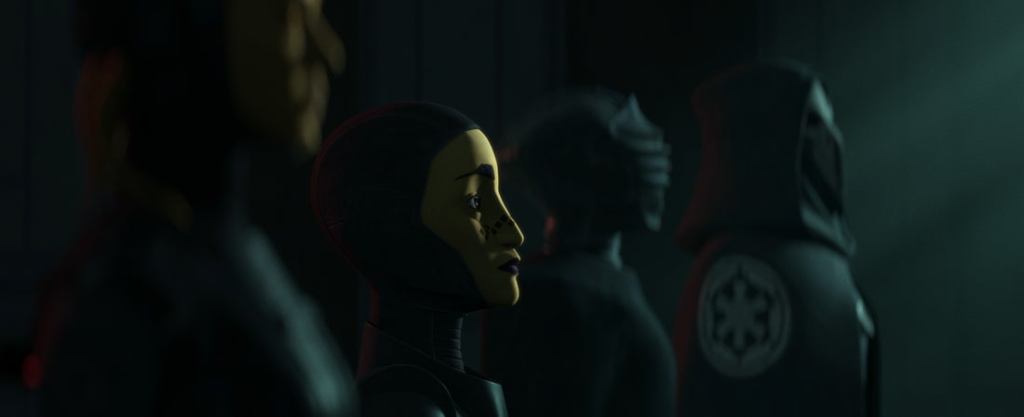 On y retrouve la méchante de la dernière série en live action, Ahsoka, Morgan Elsbeth. Après avoir tout perdu, elle navigue dans le monde impérial avec un désir de vengeance. En fait, la série explore l’histoire liée à cet épisode célèbre de la deuxième saison de The Mandalorian, où notre héros obtient son bâton et où Ahsoka apparaît pour la première fois en live action.