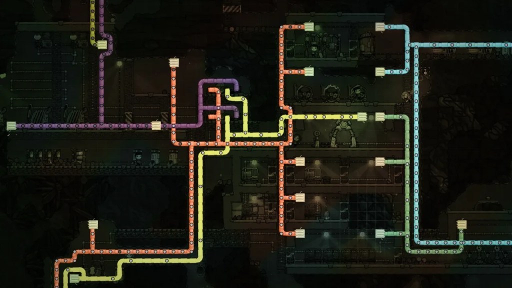 Chaque machine a des critères spécifiques, il faut donc être très attentif et considérer chaque détail. Par exemple, un générateur électrique au charbon est très efficace, mais il dégage beaucoup de chaleur et de dioxyde de carbone. Il est donc préférable de l’installer loin des pièces principales. Il est également essentiel de mettre en place un système d’aqueduc et de filtration de l’eau pour éviter de rendre vos duplicants malades.