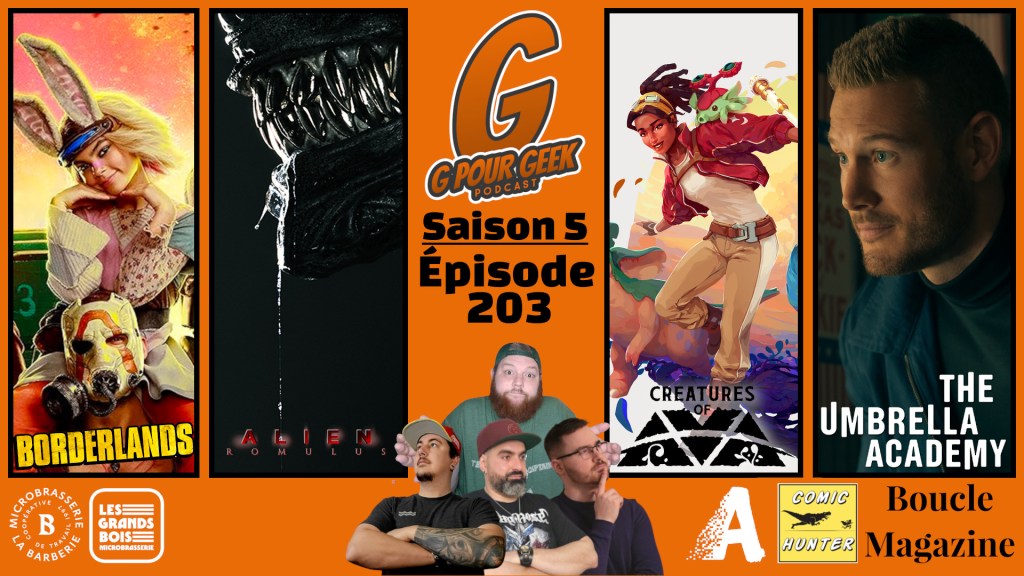 Robin, Beerman et Sicarius font les fous pendant que Trash Talker est absent pour l’épisode 203. Ils discuteront de sujets tels que The New Frontier, Doom + Doom II, Creatures of AVA, la quatrième saison de Umbrella Academy, The Union, et Leave the World Behind. Mais ce n’est pas tout, le mal-aimé de 2024, Borderlands, sera également un sujet phare de l’épisode, ainsi que le film dont tout le monde parle, Alien Romulus !