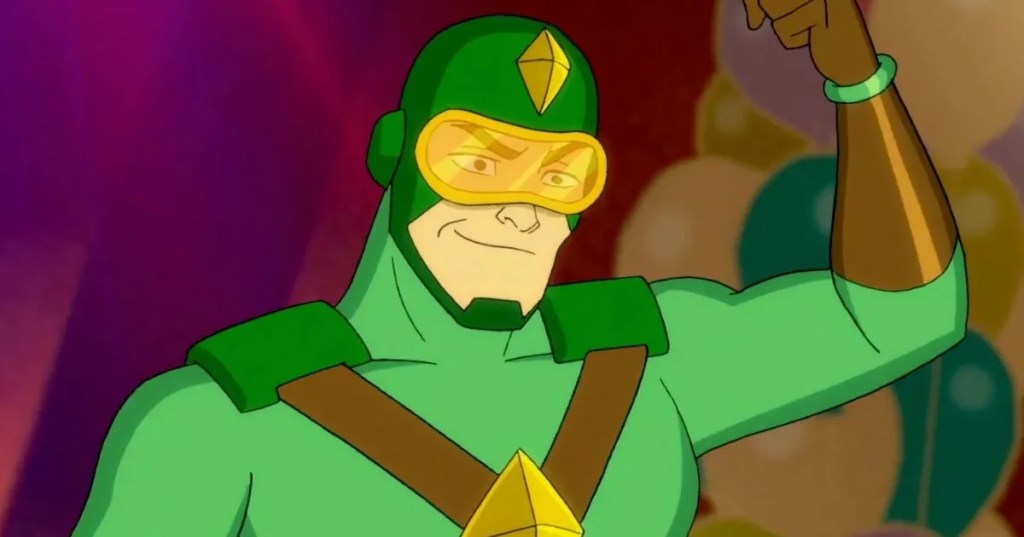 Kite Man est… un vilain avec un cerf-volant dans le dos. Il est apparu dans la série animée Harley Quinn et a maintenant son propre show !