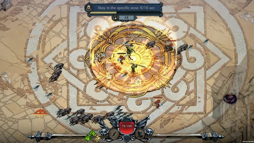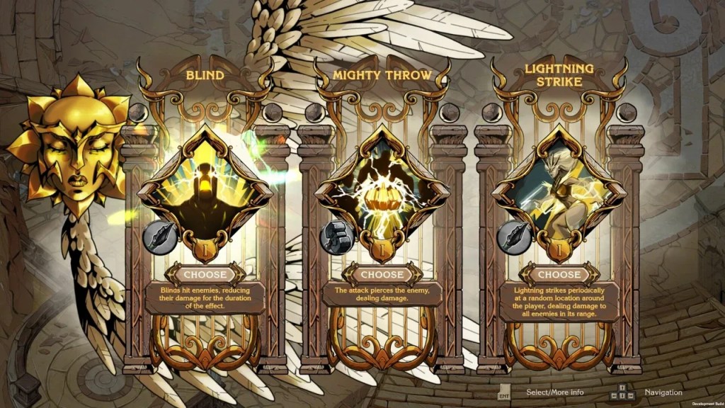 Aucune compatibilité pour la manette n’est disponible pour le moment. Vous devrez donc jouer avec les touches WASD pour déplacer votre Sentinel et la barre d’espace pour contrôler votre dash. Pour le reste, les attaques seront activées via les clics de votre souris et la direction par le mouvement de celle-ci. Aussi simple que cela. En fait, tout ce qui touche au gameplay est hyper fluide. Il faudra toutefois bien travailler vos réflexes, car le jeu est exigeant sur la gestion des clics et, bien sûr, est difficile comme n’importe quel roguelike. C’est à force de mourir que vous deviendrez de plus en plus fort et que vous aurez de la facilité à compléter les chapitres.
