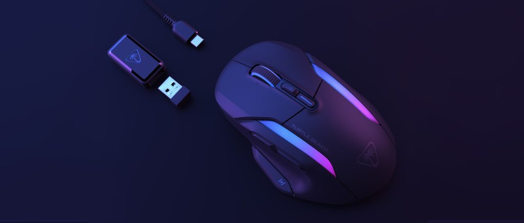 Turtle Beach promet une autonomie de 350 à 130 heures. La souris peut être réglée en Bluetooth, en mode sans fil à faible latence (2,4 GHz) ou en mode filaire. J’ai testé la souris avec une charge complète en plusieurs sessions, et j’ai obtenu 236 heures. Certains diront que ce n’est pas les 350 heures promises, mais c’est tout de même impressionnant pour une charge. J’ai oublié de mentionner que la roulette du dessus peut faire un tour complet, c’est-à-dire qu’elle peut être déplacée vers la gauche et la droite.