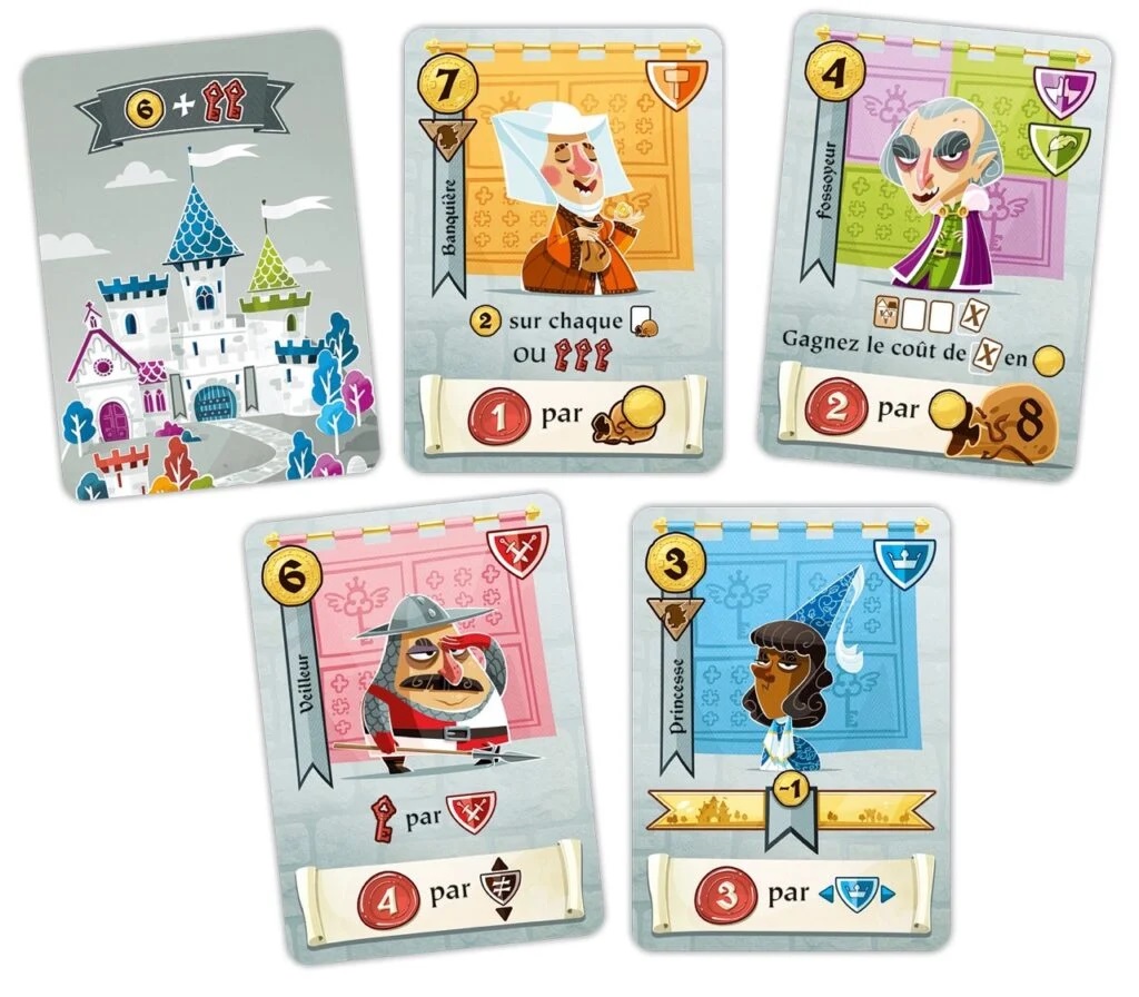 L’un des grands atouts de Château Combo réside dans la diversité des cartes. Chaque personnage possède des caractéristiques uniques : design, effets et points qu’il rapporte. Cette variété offre des possibilités stratégiques riches, rendant chaque partie différente. Même si certains effets se ressemblent, ils ne sont jamais identiques, ce qui pousse les joueurs à réfléchir attentivement à chaque achat.