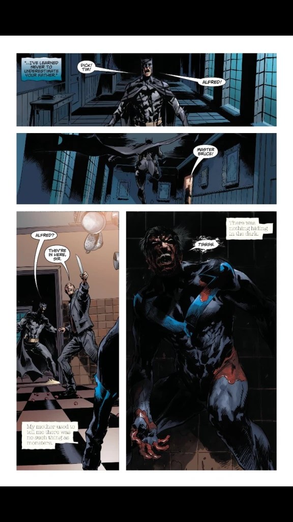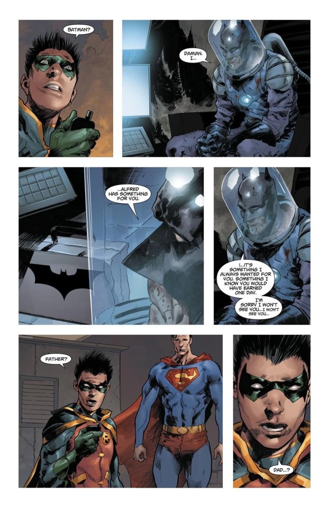 Le scénariste vedette Tom Taylor dirige cette histoire, apportant le même amour tordu et la même affection pour les personnages que dans Injustice, sa précédente histoire de futur sombre alternatif. Mais Taylor n’est pas un écrivain cynique et dépeint chaque personnage principalement à travers leur héroïsme et l’amour qu’ils se portent les uns aux autres. Les scènes de Superman et Batman avec leurs fils respectifs sont au cœur de cette histoire. La connaissance considérable de Taylor sur les différentes capacités, faiblesses et l’intelligence des héros et des méchants augmente les enjeux. Trevor Hairsine dessine habilement le carnage tout du long, avec des encres de Stefano Gaudiano – célèbre pour son travail sur The Walking Dead. Ensemble, ces créateurs empêchent l’histoire de sombrer dans la dépression, engageant plutôt les lecteurs à suivre les efforts et la détermination des super-héros.