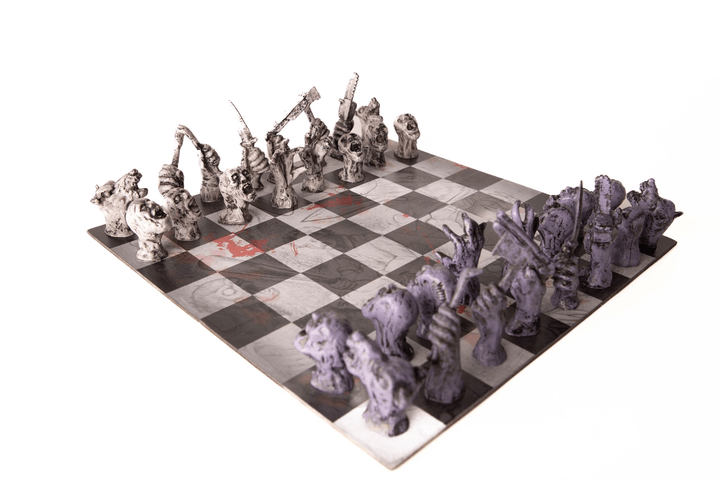 Dans Survive Apocalypse Zombie (SAZ), deux factions de survivants s’affrontent dans une arène. Les survivants sont armés et accompagnés de différents zombies, chacun doté d’une aptitude spéciale. Par exemple, les zombies « mains » immobilisent les pièces et les empêchent d’être jouées, les zombies « chiens » permettent des attaques à longue portée, et les zombies « classiques » dévorent les survivants. Pour s’en sortir, les survivants doivent abattre (ou dévorer) les zombies avant que ceux-ci ne traversent le plateau et réaniment un autre survivant. Le survivant armé d’un fusil à pompe remplace en quelque sorte la reine dans un jeu d’échecs traditionnel. Le joueur qui termine avec le plus de survivants gagne la partie.