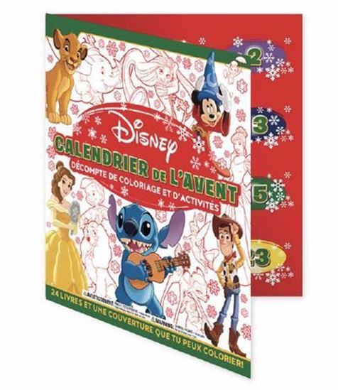 24 livres et une couverture que tu peux colorier! Retrouve tous tes amis Disney à Noël avec ce recueil magique de 24 livres d’activités et à colorier pour le compte à rebours de Noël. Découvre chaque jour un livre à l’approche de Noël et lance-toi dans la magie des Fêtes. Les livres sont emballés individuellement et insérés dans leurs pochettes et rassemblés dans un livre grand format! (Source)