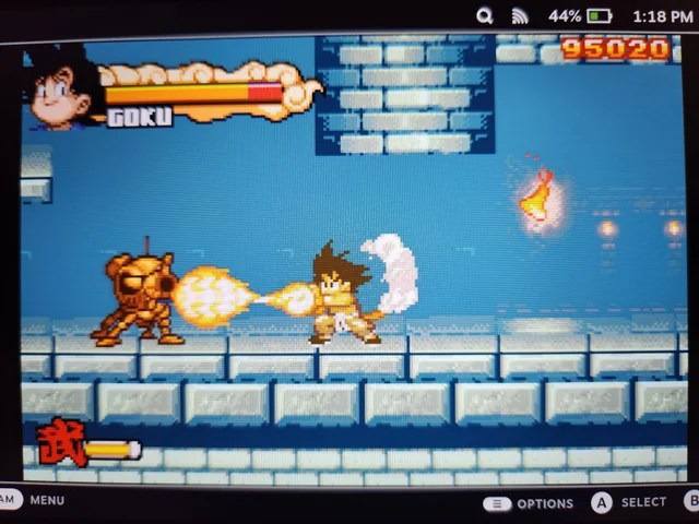 Le jeu se distingue par ses graphismes colorés et détaillés qui saisissent parfaitement l’ambiance de Dragon Ball. Le style visuel est simple mais expressif, et les sprites des personnages sont très bien réalisés. Chaque niveau est inspiré de lieux emblématiques de l’animé, et les fans apprécieront de retrouver des adversaires comme l’armée du Ruban Rouge ou les disciples de l’école de la Grue. De plus, les animations des combats sont fluides, ce qui rend chaque coup de poing et onde d’énergie d’autant plus satisfaisants.