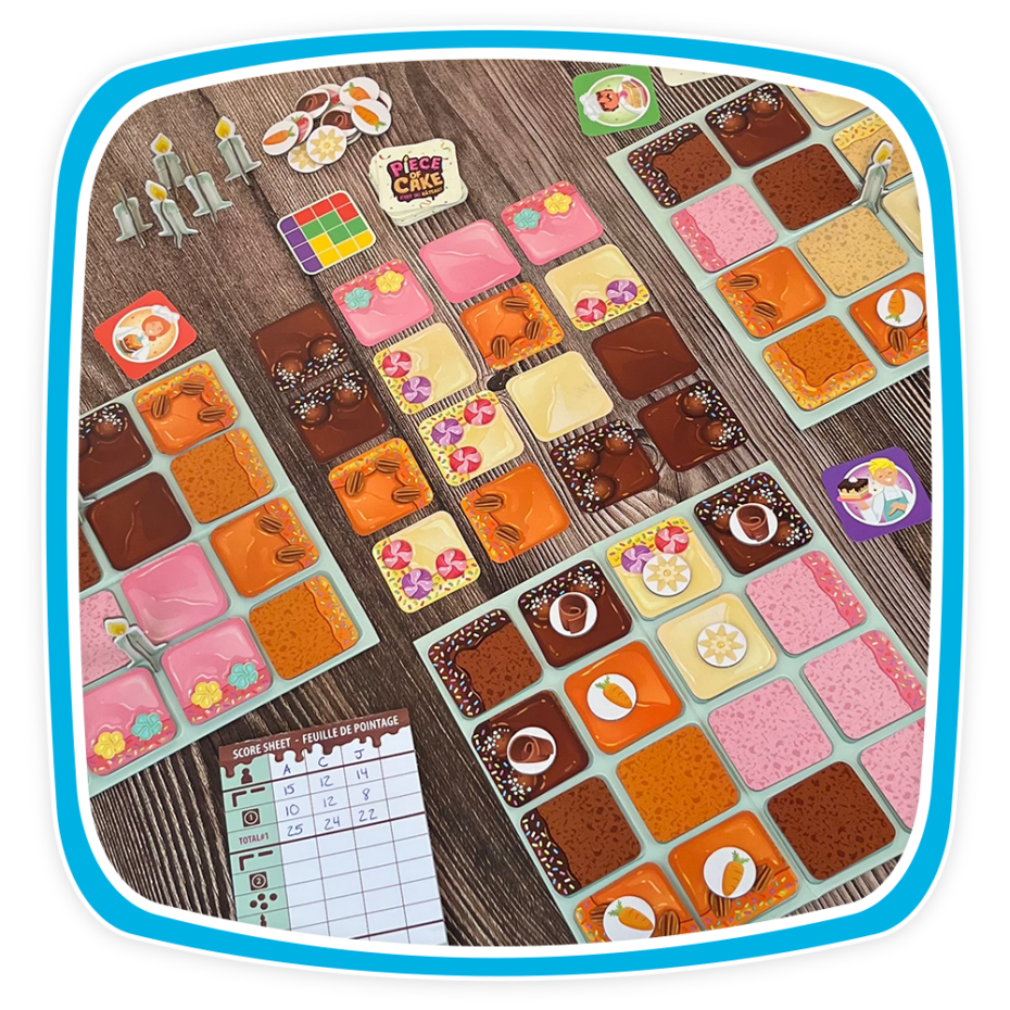 Malgré la taille de la boîte, ce n’est pas un petit jeu ! Simple, il rappelle Azul, mais la thématique pâtisserie attire particulièrement les jeunes, et surtout les petites filles, ce qui en fait un excellent choix pour les familles. Bien que le jeu dépende un peu de la chance, une bonne stratégie peut surpasser la chance ici. Idéal pour des moments en famille !