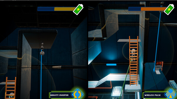 Pour avancer, votre robot a besoin d’être relié à une source de courant. Vous êtes donc limité dans vos déplacements, dans la mesure où votre cordon électrique a une longueur maximale. Vous devez donc compter sur votre coéquipier pour vous détacher de votre source d’énergie et vous reconnecter à une source un peu plus loin. Vous devrez alors lui rendre la pareille, et ainsi vous pourrez avancer à 2. Vos robots pourront également débloquer des capacités spéciales pour vous aider à évoluer dans les niveaux. Par exemple, la première capacité que vous débloquerez sera le double saut qui vous sera nécessaire pour compléter le tableau. Toutefois, vous devez savoir qu’une capacité spéciale ne peut être équipée qu’à un terminal bien précis, et ne peut être utilisée par plus d’un robot à la fois. Aussi, chaque robot ne peut avoir en sa possession qu’une seule capacité spéciale à la fois.