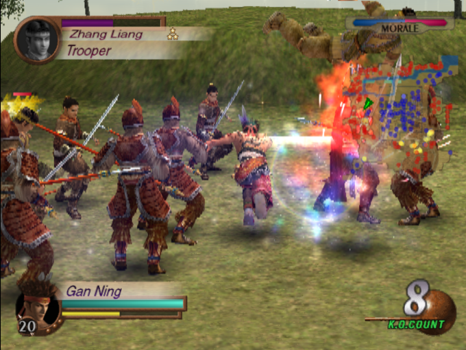 Pour un jeu de l’époque, Dynasty Warriors 3 impressionne par le nombre d’ennemis affichés à l’écran. Les batailles donnent une véritable sensation de chaos, et la PS2 montre toute sa puissance. Malheureusement, cela se fait au prix de concessions techniques : les environnements sont souvent vides et répétitifs, ce qui contraste avec la richesse visuelle des personnages, le contrôle de la caméra n’est pas à point et surtout la limite d’affichage des personnages font que si vous avez trop d’alliés orêt de vous vous ne voyez pas les ennemis que vous frappez.. La bande-son, en revanche, est un des points forts du jeu. Les compositions mêlant rock, électronique et musique traditionnelle chinoise dynamisent parfaitement les combats. Les effets sonores, bien que parfois redondants, contribuent à l’ambiance épique.