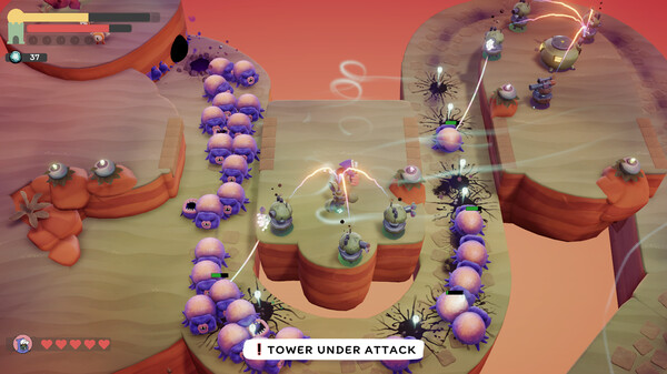Au-delà de vos tourelles, votre personnage a également l’opportunité de sauter sur les ennemis pour leur causer des dégâts et ou encore de les ralentir avec son balai pour les garder à porter de vos pièges. Le monde de Tempest Tower regorge d’éléments avec lesquels vous pouvez interagir pour vous aider, notamment des bombes plantes qui se prouveront utiles pour éliminer un grand nombre de bestioles d’un coup! Au fil des succès, vous gagnerez des récompenses et de nouvelles défenses à utiliser pour vous appuyer, ainsi que d’autres objets vous permettant de naviguer plus rapidement à travers le monde, comme des trampolines.