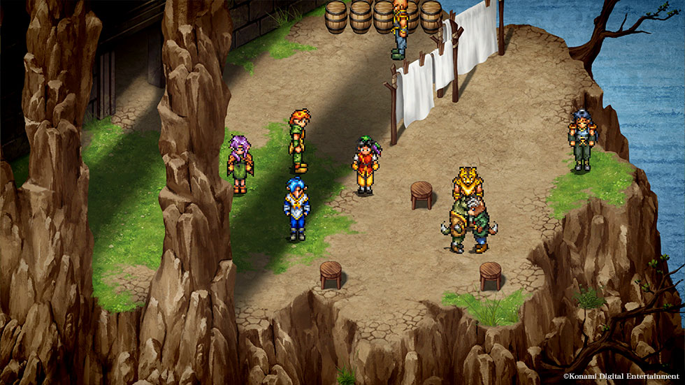 Il s’agit d’un remaster, et parlons justement de cet aspect. Les personnages gardent complètement leur qualité graphique de la version PlayStation 1, ce qui signifie des personnages pixelisés, comme la plupart des jeux de la Super Nintendo. Ce jeu n’était pas en trois dimensions à l’époque. En fait, si vous avez joué à Chrono Trigger sur Super Nintendo, les personnages sont très semblables.