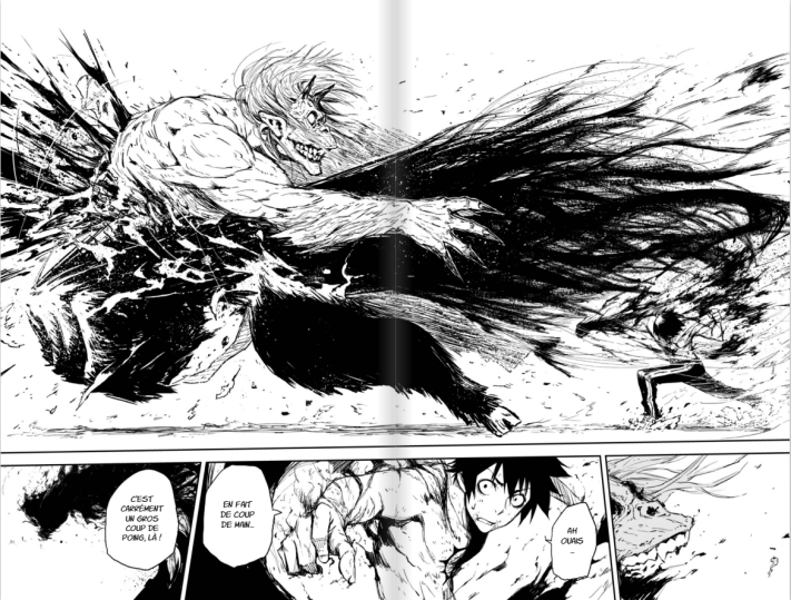 Le style artistique de Tsuyoshi Takaki se distingue par des scènes d’action dynamiques et fluides. Les combats sont bien chorégraphiés, offrant une lisibilité appréciable malgré l’intensité des affrontements. Les pouvoirs des personnages, notamment la capacité de Jiro et Rago à manipuler une fumée opaque, sont représentés de manière créative, ajoutant une dimension visuelle intéressante aux combats. Les designs des personnages sont soignés, reflétant leur personnalité et leur rôle dans l’histoire. Les Mononoke, en particulier, bénéficient d’une attention particulière, leur conférant une aura à la fois mystique et menaçante.