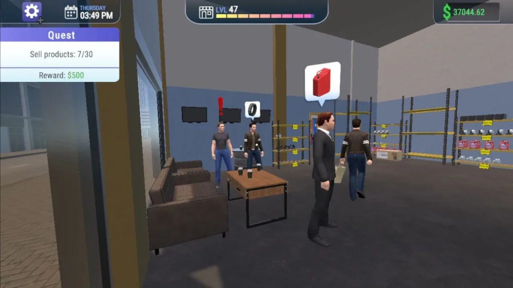 Vous commencez avec une simple boutique proposant la vente de produits et de pièces automobiles, mais vous pourrez progressivement développer votre activité en ajoutant un service de revente de voitures ainsi qu’un atelier mécanique. Plus vous progressez dans votre business, plus vous débloquez de nouveaux éléments.