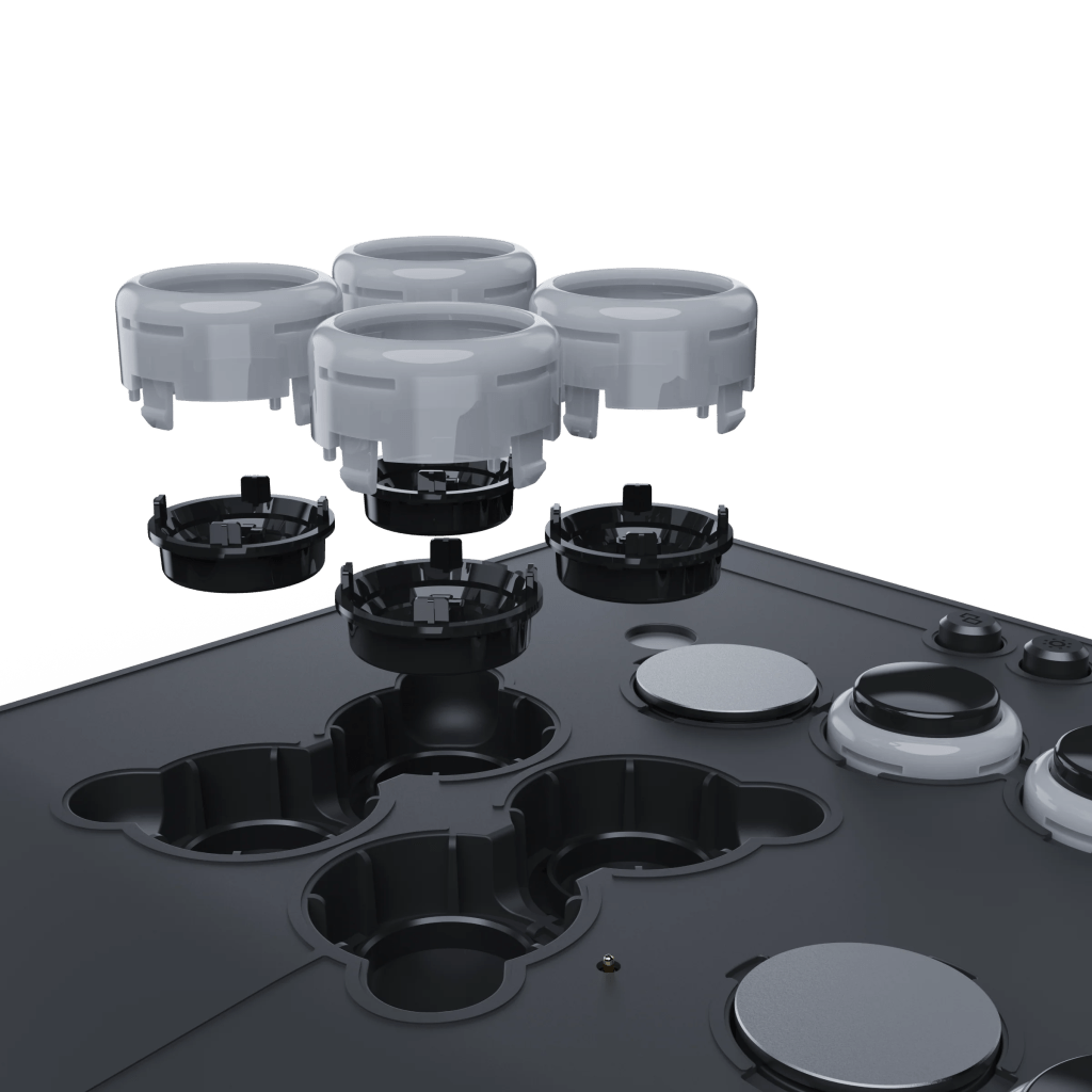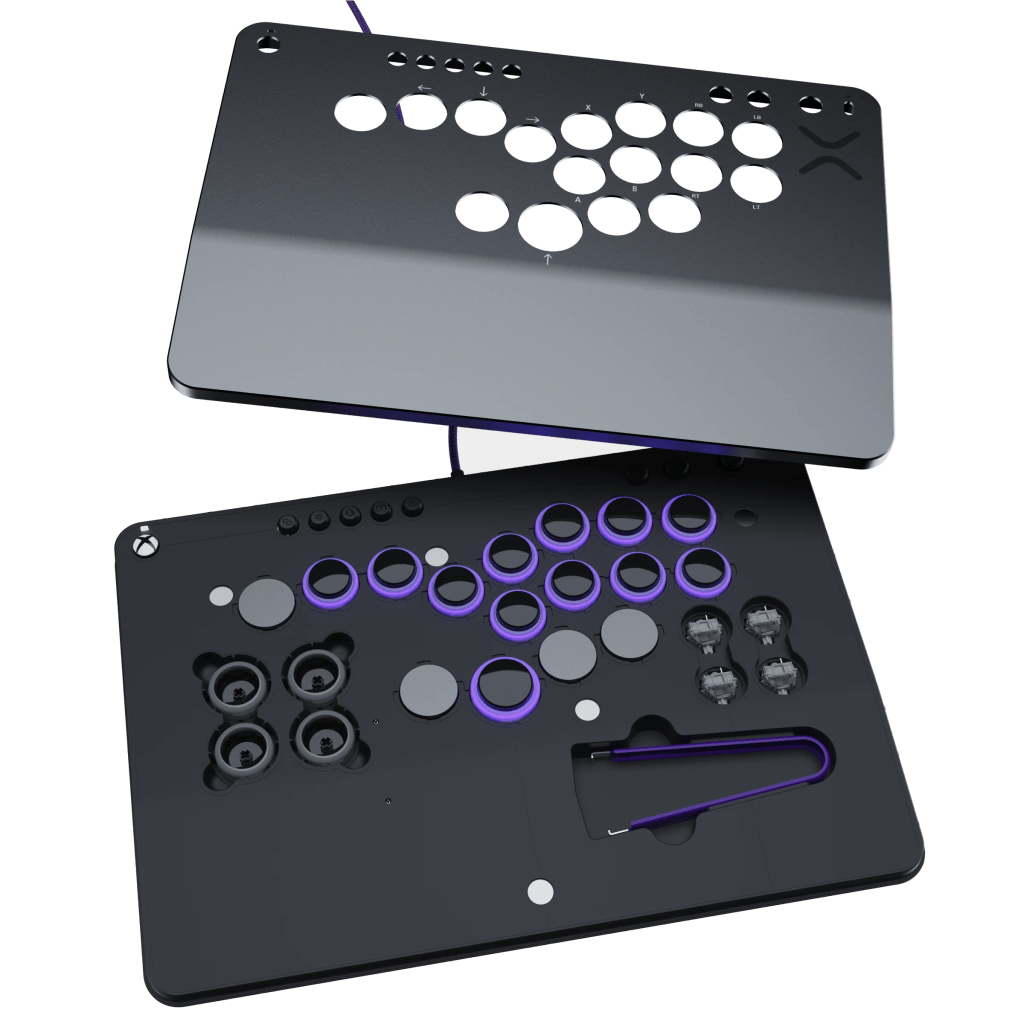 La plaque est maintenue en place par cinq aimants, ce qui permet une ouverture simple et rapide sans difficulté. Une fois la plaque retirée, vous aurez la possibilité d’ajouter manuellement quatre boutons et même de les repositionner pour obtenir la prise en main idéale pour vos futurs combos.