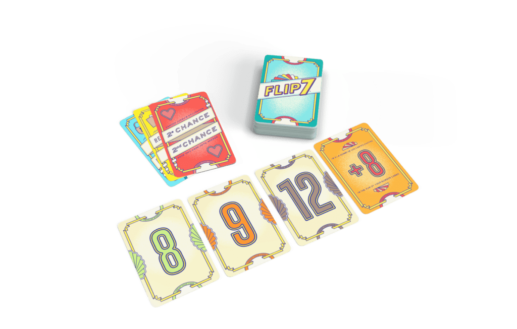 Flip 7 est un jeu de société de 2024, créé par Eric Olsen, édité par The Op Games et distribué par Randolph. Conçu pour 3+ joueurs, de 8 ans et +, d’une durée d’environ 20 minutes, il s’agit d’un jeu de cartes avec le mécanisme stop ou encore. La boite contient un livre de règles et 94 cartes (1 carte de valeur 0, 1 de valeur 1, 2 de valeur 2…12 de valeur 12. Il y a aussi 6 cartes spéciales et 9 cartes action).