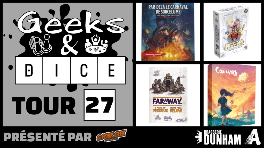 #GeeksAndDice #JeuxDeSociété #BoardGames #Microbrasserie #FarAway #Canvas #CarnavalDeSorcelume #RaisingRobots #Dunham #Menaud #PodcastGeek #QuébecGeek #BeerAndBoardGames