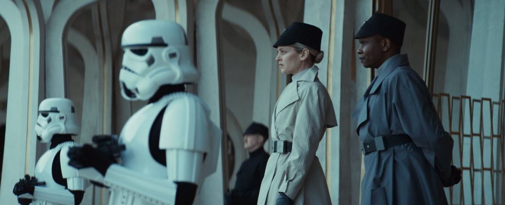 Même si la saison n’est pas officiellement divisée en trois parties, on comprend rapidement, une fois tous les épisodes visionnés, qu’elle se construit comme un triptyque. Dès le premier épisode, on remarque la qualité de la production et le soin apporté à l’esthétique, notamment des costumes, qui rappellent ceux des épisodes IV, V et VI de La Guerre des étoiles. On embarque facilement… mais le charme s’estompe un peu. Le premier tiers de la saison bascule rapidement dans un jeu politique complexe entre les personnages. On sent qu’une rébellion contre l’Empire se prépare, mais le rythme lent rend le tout difficile à suivre avec enthousiasme.