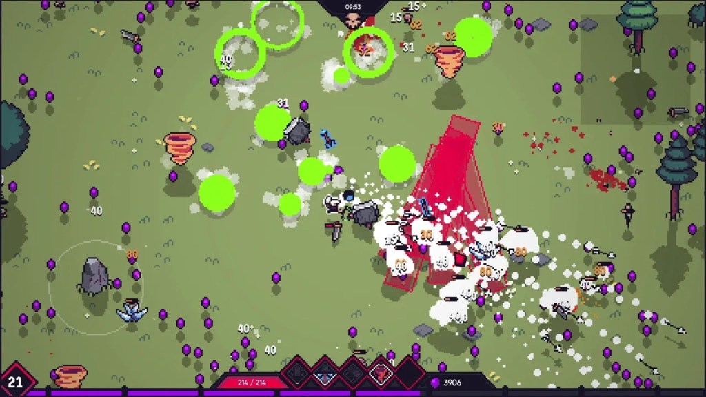 Il faut sans cesse faire le tour de la carte, récupérer les diamants tombés au sol pour gagner de l’expérience, et ainsi débloquer de nouveaux pouvoirs. Pour les passionnés de ce genre de roguelite, le jeu saura sans doute séduire. En revanche, pour les joueurs moins habitués à ce type d’expérience, il pourrait s’avérer frustrant.