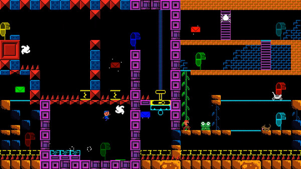 Les niveaux dans Mayhem Mail sont construits pour être chaotiques et rapides. Trampolines, chiens enragés, plateformes amovibles, même des téléporteurs; la navigation dans les différents niveaux du jeu est à la fois agréable et complètement ridicule. Certains pièges vous feront réellement penser à la meilleure façon de les aborder et certains ennemis vous feront parfois rager. Jamais trop longtemps, toutefois. Le jeu offre plusieurs options d’aide (comme un mode invincible) pour vous aider dans les niveaux qui vous causent le plus de problèmes. Si les puristes voudront sans doute s’en passer, j’ai trouvé l’ajout intéressant pour les joueurs moins expérimentés.