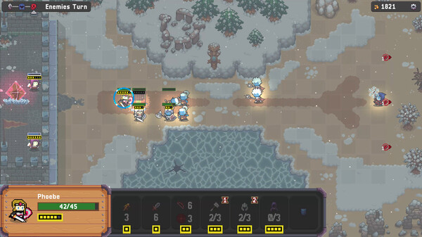 Hormis vos attaques personnelles, Phoebe peut faire appel à des chevaliers pour l’appuyer sur le terrain, ou encore des archers pour défendre du haut des remparts du château. Vous avez également l’option de construire des tourelles pour attaquer les ennemis à distance et pour bloquer certains passages menant à la forteresse. Si les chevaliers et les tours sont limités par leurs points de vie, les archers sont limités par leurs munitions. Dans tous les cas, vous devrez renouveler vos défenses régulièrement, en n’oubliant pas que, en plus des points d’action, vous devrez attendre un certain nombre de tours après chaque usage avant de pouvoir réutiliser l’action.