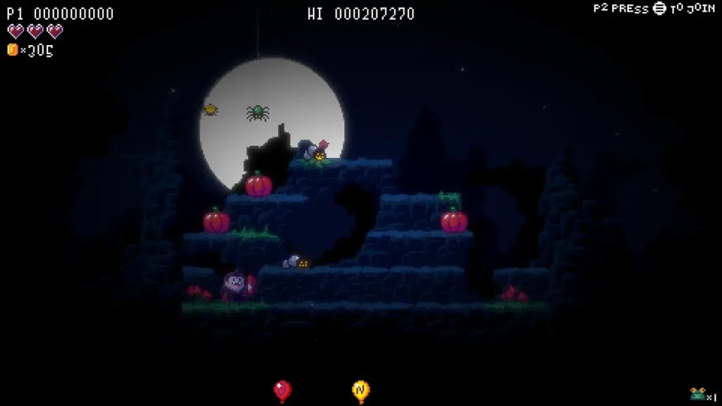 Mais ce n’est pas un défaut en soi. Le jeu semble assumer pleinement son statut d’hommage, voire de capsule temporelle. Il invite à revivre une forme de pureté vidéoludique : celle où un seul bouton suffisait à tout faire. Le tout est présenté avec une direction artistique charmante, oscillant entre l’effrayant et le mignon. Les environnements fleuris et les teintes automnales contrastent joliment avec les monstres de la nuit, renforçant l’identité visuelle du jeu.