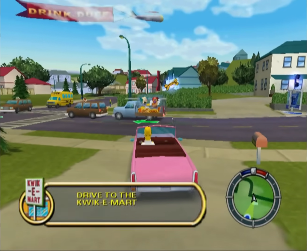 La conduite est particulièrement arcade : rapide, fun et volontairement exagérée. Les voitures dérapent dans tous les sens, peuvent exploser, et se pilotent avec une aisance quasi-cartoon. Ajoutez à cela des véhicules délirants (comme la voiture de Mr. Plow, un camion de crème glacée ou le Monorail), et vous obtenez un bac à sable où le chaos règne en maître.