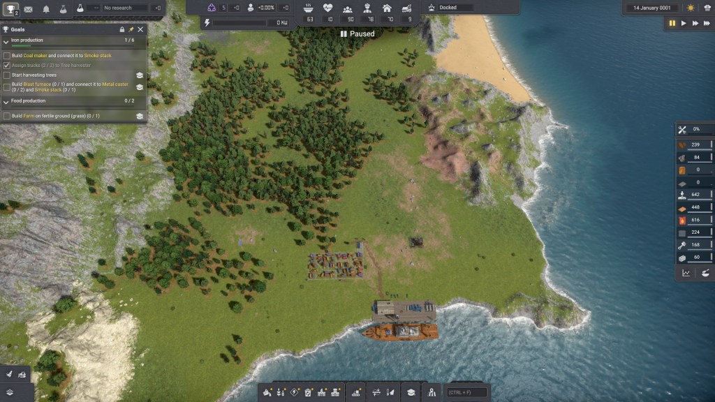 L’arbre technologique très vaste offre énormément de décisions intéressantes sur quoi prioriser comme choix pour développer sa colonie. Est-ce qu’il faut prioriser le développement de meilleurs véhicules d’extraction, de meilleurs procédés de raffinement, ou des efforts pour améliorer l’agriculture? La recherche est également liée à l’exploration. En effet, Captain of Industry a un système de carte pour représenter les îles et eaux autour de notre colonie qu’il faut explorer avec notre navire, qu’il ne faut pas négliger. L’exploration nous permet de découvrir des colonies voisines avec qui commercer, des mines de ressources, et de découvrir des semences et technologies pour aider notre colonie à prospérer.