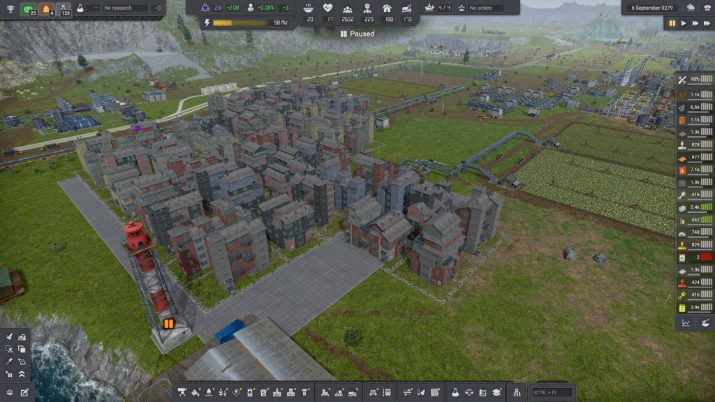 Cependant, le jeu est difficile à maîtriser, malgré une solide série de quêtes tutorielles. Avec un arbre technologique vaste et d’immenses possibilités de développement, il est facile de se perdre. Il est aussi facile pour un débutant de tomber dans une spirale fatale en gérant mal ses ressources. Il faut s’attendre à revenir souvent à des sauvegardes précédentes en début de partie. En conséquence, c’est un jeu qui demande un grand investissement de temps – et il est très facile d’y perdre la notion du temps… Après tout, les industries doivent grossir pour répondre aux besoins des industries!