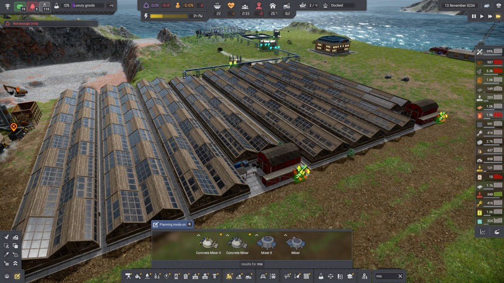 Les développeurs de Captain of Industry travaillent constamment pour peaufiner leur jeu avec des mises à jour régulières qui optimisent et améliorent la jouabilité. Les dernières mises à jour ont implémenté une mécanique pour affecter des camions à une zone spécifique de notre colonie. Les écrans de chargement du jeu nous montrent d’ailleurs les changements apportés dans les dernières mises à jour. Alors que cette critique était dans sa phase finale de rédaction, une nouvelle mise à jour a été publiée… ajoutant des locomotives utilisant de l’hydrogène.