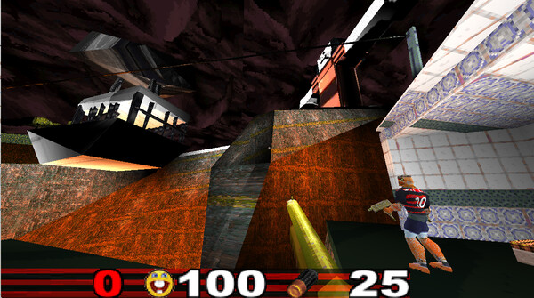 Graphiquement, c’est très loin d’être le jeu de l’année. Les visuels sont ultra pixelisés, volontairement crades, avec une direction artistique qui rappelle les jeux des années 90. On pense à Doom, Quake, ou même à certains mods amateurs de l’époque. Les textures sont baveuses, les animations rigides, et les environnements très rudimentaires. On est dans l’esthétique rétro poussée à l’extrême. Il en va de même pour le son : les effets sonores sont minimalistes, les coups de feu claquent de façon sèche, et les voix sont étouffées comme si elles sortaient d’un vieux talkie-walkie. La musique, elle, saute entre des silences pesants et des beats électroniques stridents sans avertissement. Tout est brut, tout est cheap mais c’est exactement ce que le jeu cherche à être : un cauchemar déglingué qui ne ressemble à rien d’autre.