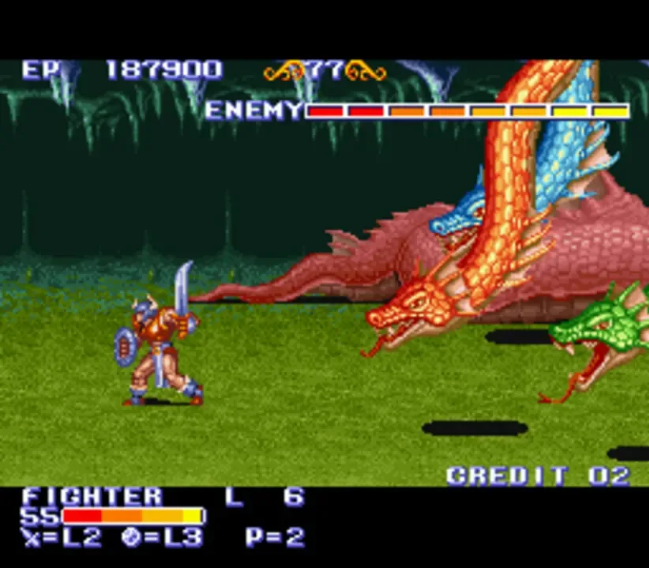 Pour un jeu SNES de 1994, The King of Dragons reste visuellement très agréable. Les sprites sont détaillés, les environnements variés et colorés, et l’univers heroic fantasy est parfaitement retranscrit. Les animations sont fluides, et même si l’arcade reste au-dessus, la version console ne démérite pas.