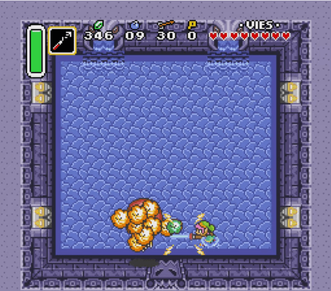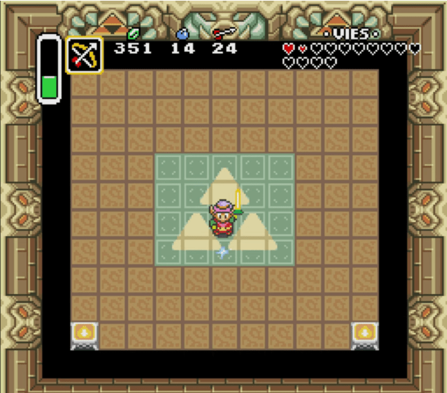 A Link to the Past propose une panoplie d’objets devenus emblématiques : l’arc, le grappin, la baguette de feu, les bombes, le boomerang, sans oublier l’Épée de Légende (Master Sword ou Excalibur en Québécois). L’utilisation de ces objets ne se limite jamais à l’action : ils enrichissent l’exploration, encouragent la créativité et diversifient l’expérience.