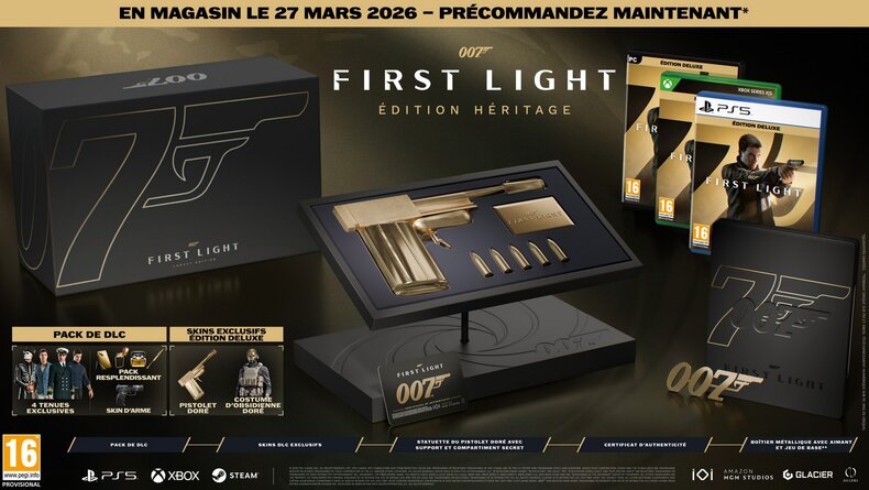 Les fans de l’agent le plus célèbre au monde peuvent déjà sortir leur carte de crédit : 007 : First Light, le prologue narratif signé IO Interactive, est maintenant disponible en prévente. Pour ceux qui souhaitent une pièce de collection, l’édition Collector Héritage est proposée à 449,99 $ CAD.