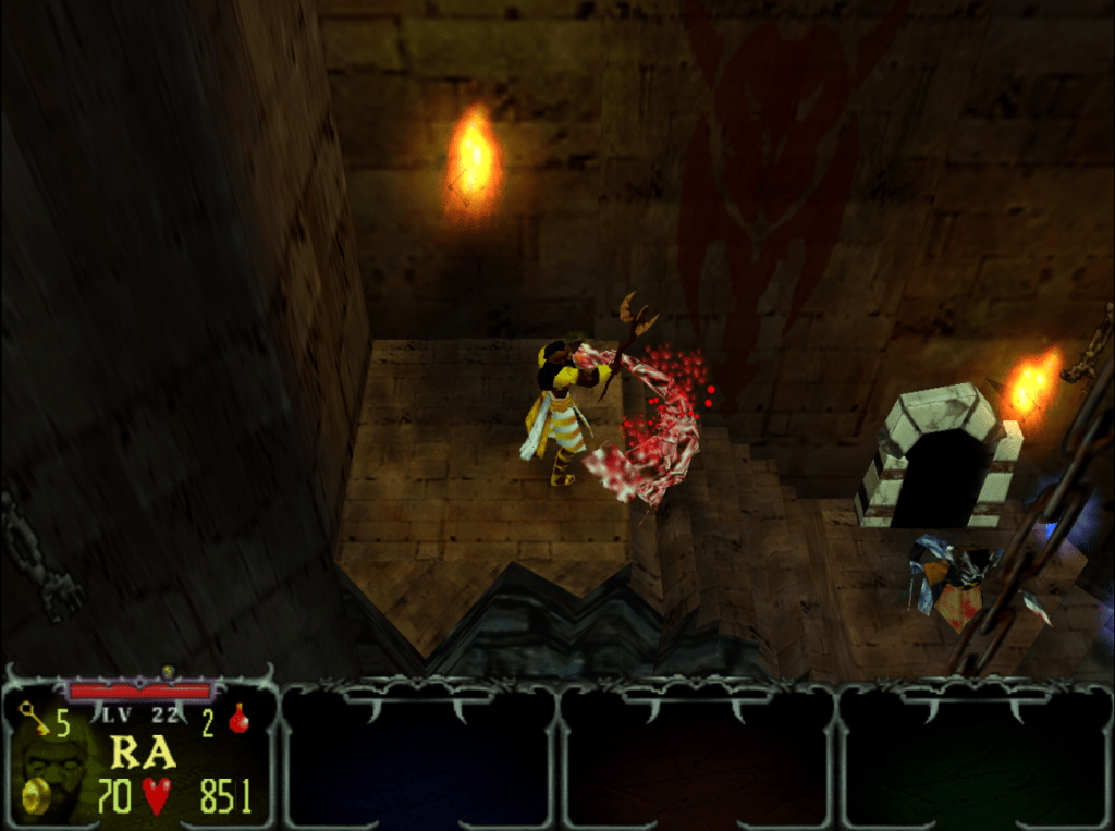 On ne va pas se mentir : Dark Legacy n’est pas un jeu complexe. Les commandes sont simples : attaquer, utiliser de la magie, collecter des objets et progresser dans des niveaux linéaires infestés d’ennemis. Mais c’est justement cette simplicité qui fait sa force.