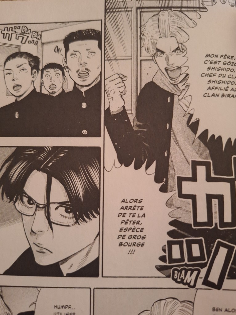 L’auteur nous fait plonger dans l’univers dès la page 2, en nous faisant atterrir au Lycée Biran, un lycée bien particulier. Ce lycée a pour vocation de former l’élite de la société, celle qui sera amenée à diriger le pays et qui occupera les postes les plus clés…. Oui, mais non. On découvre une élite cachée, celle qui domine réellement le monde, mais œuvrant dans les coulisses, comme des marionnettistes : la mafia, la pègre. Intégrer ce lycée, c’est avoir une chance de monter en grade dans les organisations mafieuses et de finir en haut de l’échelle afin de pouvoir mener le premier homme politique du pays par le bout du nez. C’est une école où tout est permis, la loi du plus fort prime, mais aussi de montrer aux autres qui a la plus grosse… Entre joutes verbales et bagarres, tout y passe, mais les épreuves de force tiennent quand même la tête du classement.