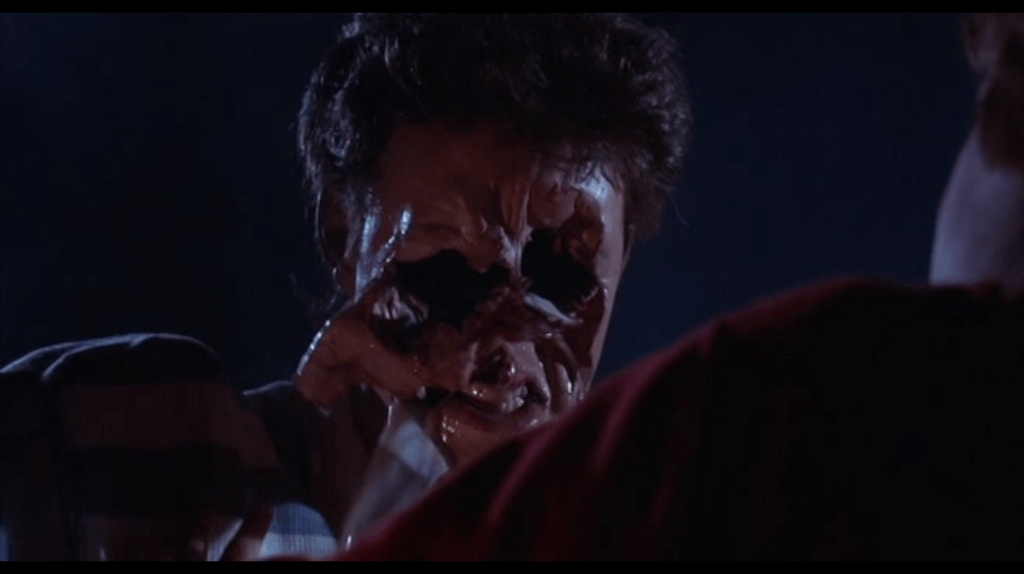 Le personnage de Terry (Louis Tripp), jeune fan de métal, découvre la mythologie démoniaque à travers un album de heavy metal inspiré du “Dark Book”. Inutile de préciser dans quel sens il fait tourner le disque pour entendre les paroles cachées… Le fan de musique métal que je suis a tout de même souri en voyant des images d’Eddie — la mascotte d’Iron Maiden — ainsi que quelques logos d’albums bien connus. Un clin d’œil sympathique qui ancre le film dans son époque.