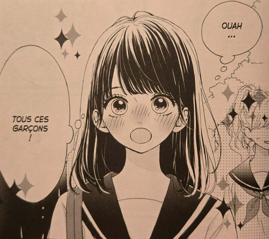 Quant à l’ambiance, elle reste globalement légère : c’est un shôjo qui sourit, un peu maladroit, mais vraiment sincère. Sous ses airs légers et scintillants, on perçoit une douce méditation sur la rencontre, la compréhension de l’autre et la bienveillance des sentiments! Le lycée, ce décor si familier, devient ainsi un théâtre miniature où s’expriment toutes les nuances du premier émoi : curiosité, peur, maladresse et excitation s’entremêles.
