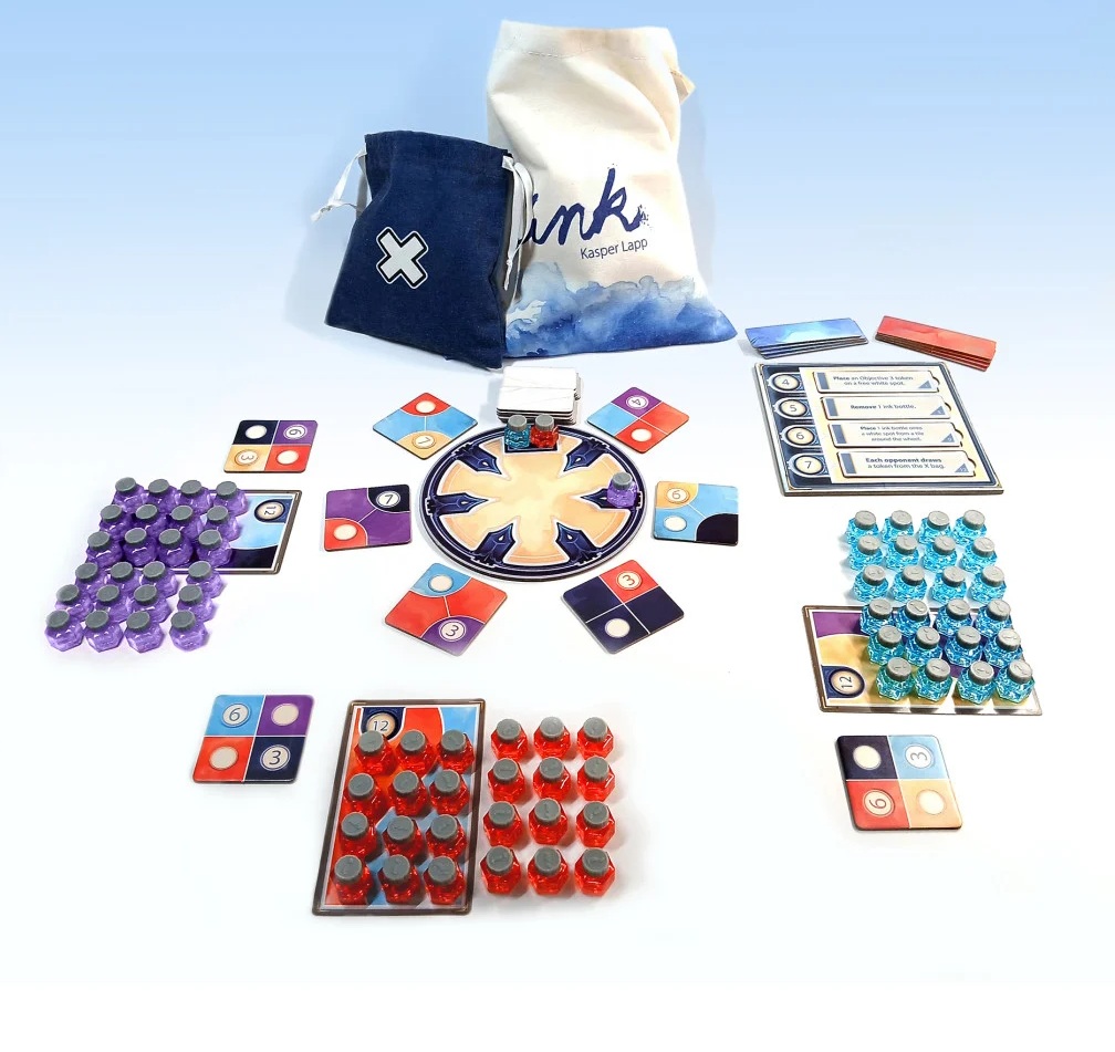 Ink est un jeu de placement de tuiles pour 1 à 4 joueurs et pour des parties de 30 à 45 minutes. Il s’agit d’un jeu simple, mais qui demande quand même de la stratégie et une bonne dose de réflexion. Dans ce jeu, les joueurs incarnent des peintres qui tentent de créer une superbe peinture.