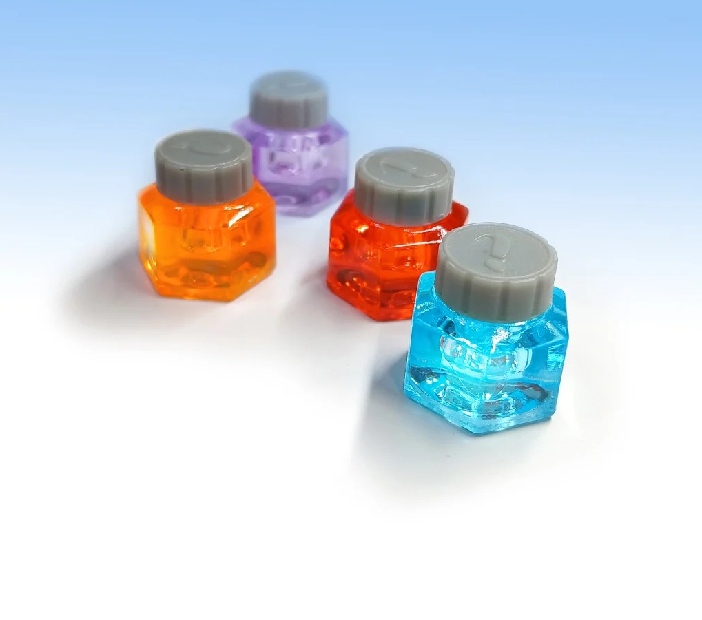 Je ne vais pas vous mentir, quand j’ai ouvert le livret de règles et que j’ai vu la mise en place, j’ai été un peu découragé. Cependant, je considère que ce jeu vaut la peine d’être joué, alors ça en a valu la peine. Il y a quand même 10 étapes à la mise en place dans le livret pour ce jeu simple, mais comme il est le fun, il en vaut la peine. On commence par placer la roue au milieu de la table. Ensuite, on distribue au hasard une tuile de départ à chaque joueur ainsi qu’une carte palette qui possède deux couleurs. On peut par la suite mettre toutes les tuiles dans le sac Ink et en révéler 6 qui seront placées autour de la roue à chaque emplacement de plume sur celle-ci. Il faut ensuite trier les jetons x et les jetons xx. Quand c’est fait, on met 3 jetons x par joueur dans le sac x. Les jetons xx seront mis de côté pour l’instant. Le plateau action est mis à la vue de tous les joueurs et 4 actions sont choisies au hasard pour aller sur le plateau. Les joueurs choisissent une couleur d’encre et placent une bouteille de la couleur choisie sur la case de départ de la roue, 12 bouteilles sur leur palette et les 12 restantes à côté de leur palette. Les joueurs sont maintenant prêts à jouer.
