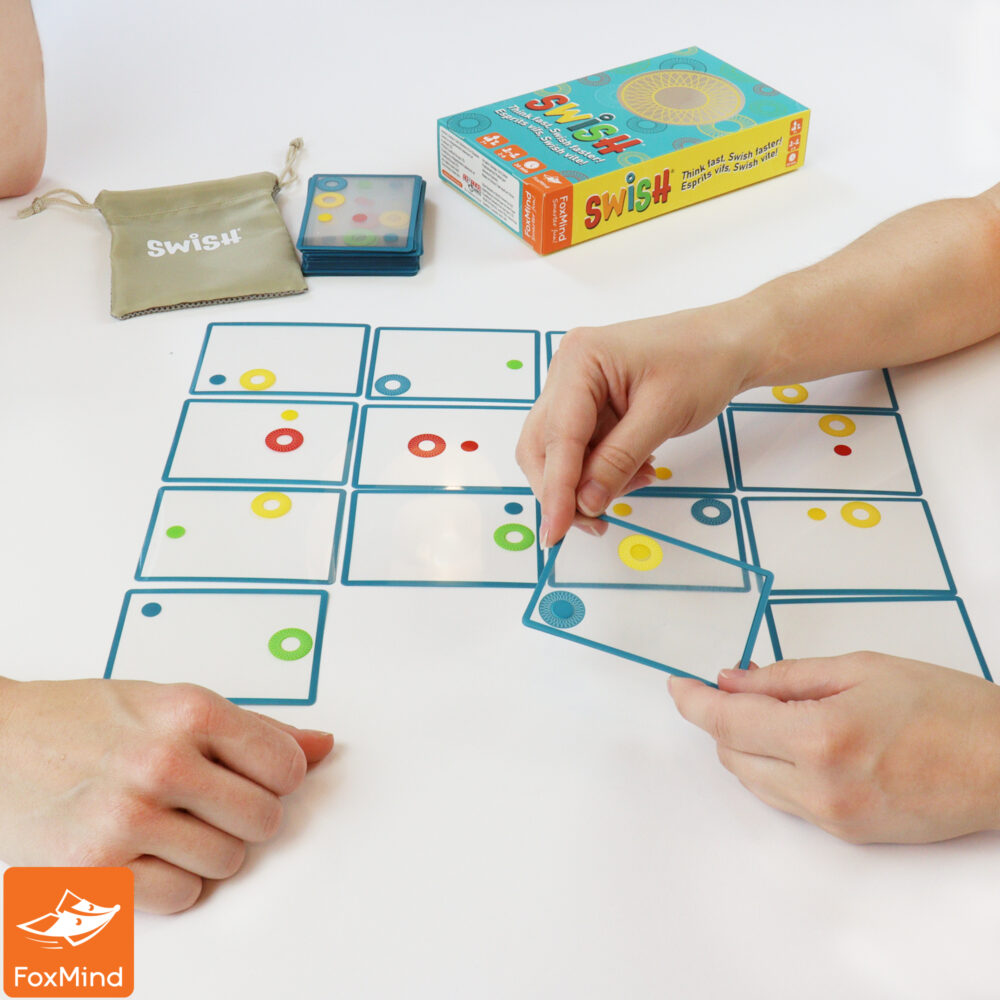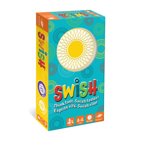 Swish est un jeu de cartes pour 2 à 6 joueurs de 7 ans et plus, pour des parties d’environ 20 minutes. Ici, il faut prendre l’expression jeu de cartes au sens large. Le but n’est pas d’accumuler des cartes, ni même de s’en débarrasser. Il s’agit plutôt de reconnaître des patterns de dessins sur les cartes et de les assembler pour former un Swish. Le jeu est conçu par des enseignants pour favoriser le développement du raisonnement spatial chez les jeunes.