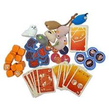Le matériel de ce jeu est quand même spécial. Il y a des jetons assez simples, un chat qui couine, 6 souris en peluche, 6 jetons de poker litière, 12 dés arbre à chat et des cartes. Il s’agit d’un matériel assez bizarre pour un jeu, mais c’est parfait pour ce jeu.
