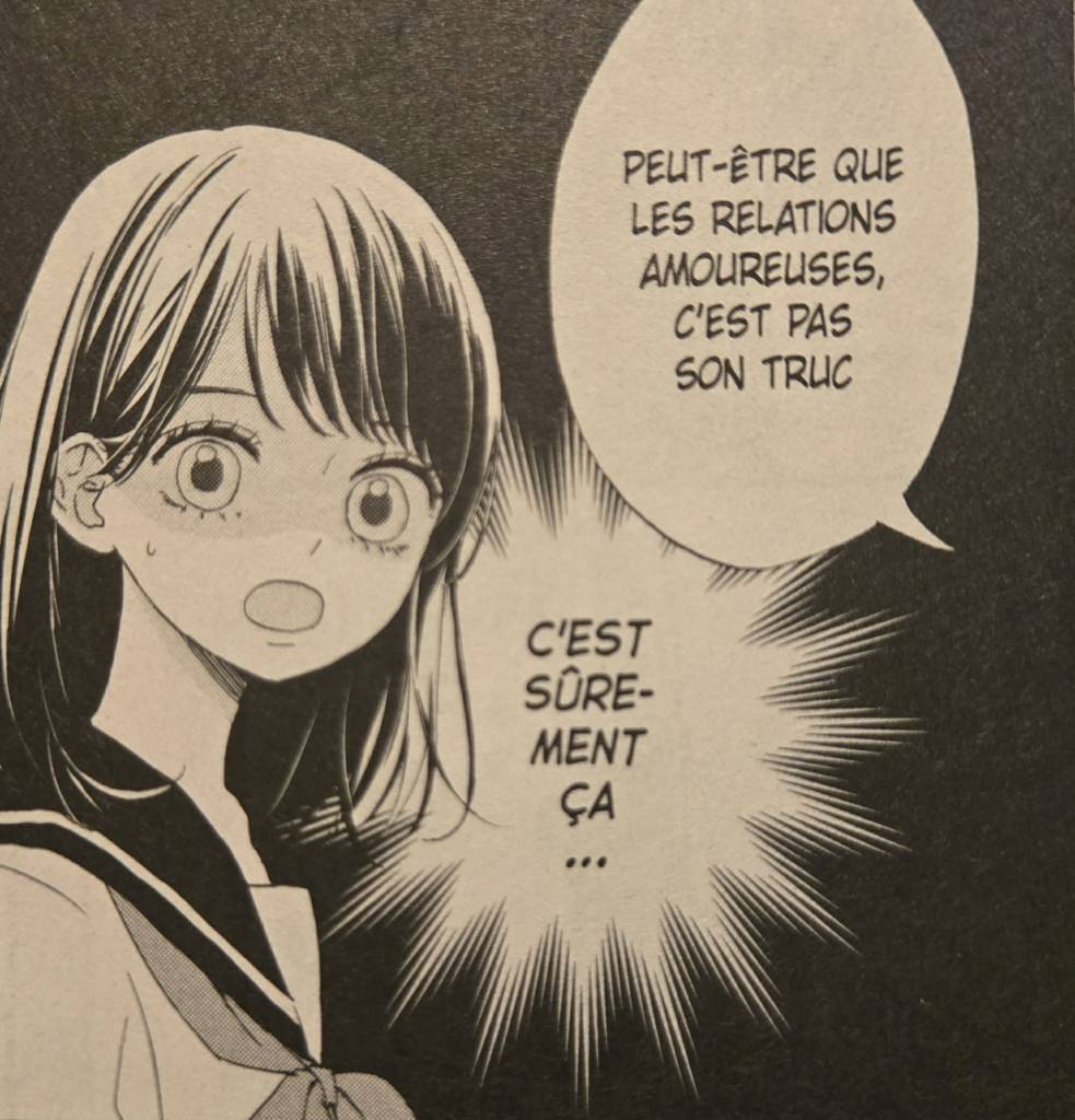 Au final, j’ai bien apprécié ma lecture malgré les quelques bémols dont j’ai parlé. C’est un tome qui se concentre davantage sur la définition de l’amour, autant pour Kanako que pour Tamao. On observe ainsi une jolie progression des personnages, enrichie par l’introduction de nouveaux rôles secondaires qui apportent, chacun à leur manière, un petit plus à la romance de nos deux lycéens.