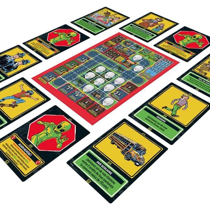 - Bus municipal ou scolaire : Si un gamin est sur l’une des cases Bus municipal ou scolaire, ces cartes permettent de le déplacer dans un autre bus du même type (permettant de le déplacer plus rapidement vers un lieu sûr).