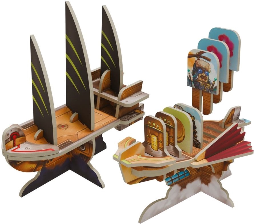 Le combat : pour cette étape, le capitaine actif choisit quel joueur commence le combat. Une fois choisi, les joueurs tentent de jouer des cartes pour venir éliminer les dés obtenus précédemment. Ils le font l’un après l’autre et si l’un d’eux ne peut pas éliminer un dé, l’aéronef prendra un dommage. Pour éliminer un dé, il faut soit jouer une carte avec le symbole du dé, soit jouer une carte joker ou simplement jouer deux cartes identiques pour éliminer n’importe quel dé.